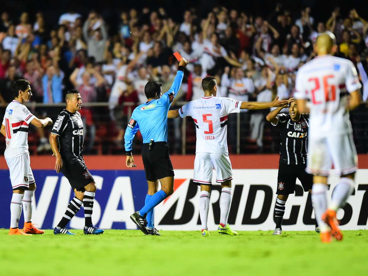 A expulsão de Emerson Sheik aos 18min do primeiro tempo do clássico São Paulo x Corinthians fez ferver o Twitter e as redes sociais na noite desta quarta-feira. Os internautas entraram em discussão e se dividiram sobre o cartão vermelho mostrado por Sandro Meira Ricci por um toquinho do corintiano para derrubar Rafael Tolói.
