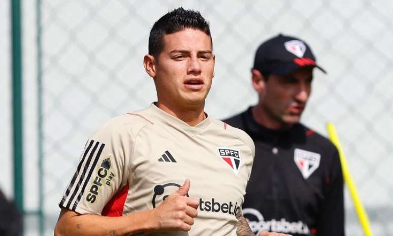 Sob a supervisão da preparação física do Tricolor, @jamesdrodriguez realizou atividades com bola. 🏃🏻⚽️#JamesTricolor#VamosSãoPaulo 🇾🇪 pic.twitter.com/ljBO3li0uy