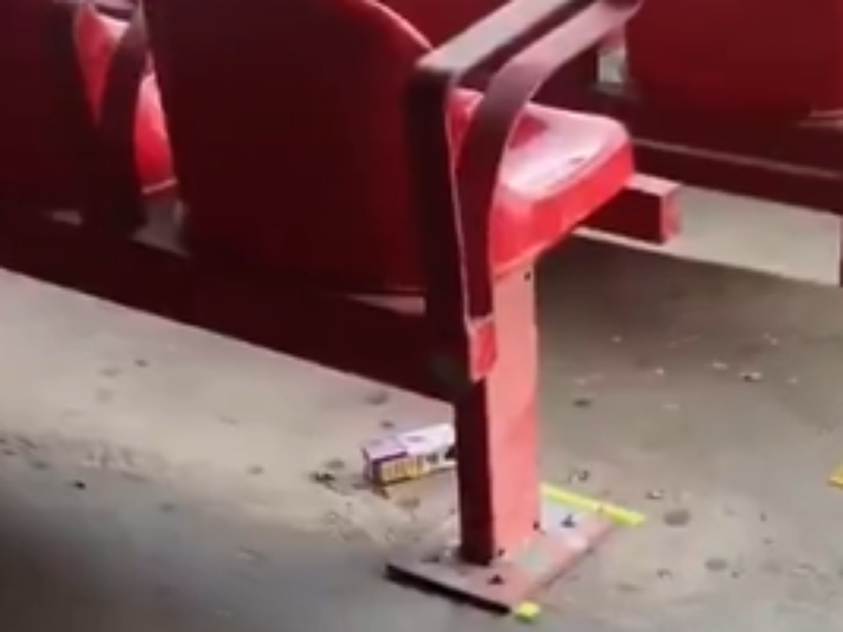Nas imagens gravadas dentro do estádio, é possível ver o lixo acumulado desde sábado (21), data em que aconteceu a partida válida pelo Campeonato Brasileiro. Há embalagens de papelão, copos plásticos, pipocas e outros resíduos espalhados pelo chão.
