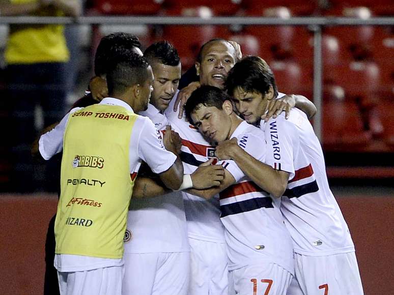 Jogadores do São Paulo festejam gol na vitória sobre o Audax no Morumbi