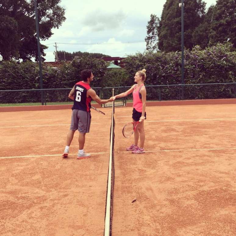 Mesmo durante a folga de Carnaval, Alexandre Pato não se afastou dos esportes. Mas o atacante mudou de modalidade neste domingo e resolveu jogar tênis com a namorada Fiorella Mattheis. Depois da partida, o são-paulino divulgou no Instagram que venceu o duelo.
