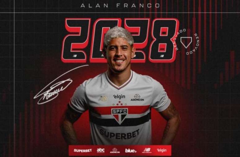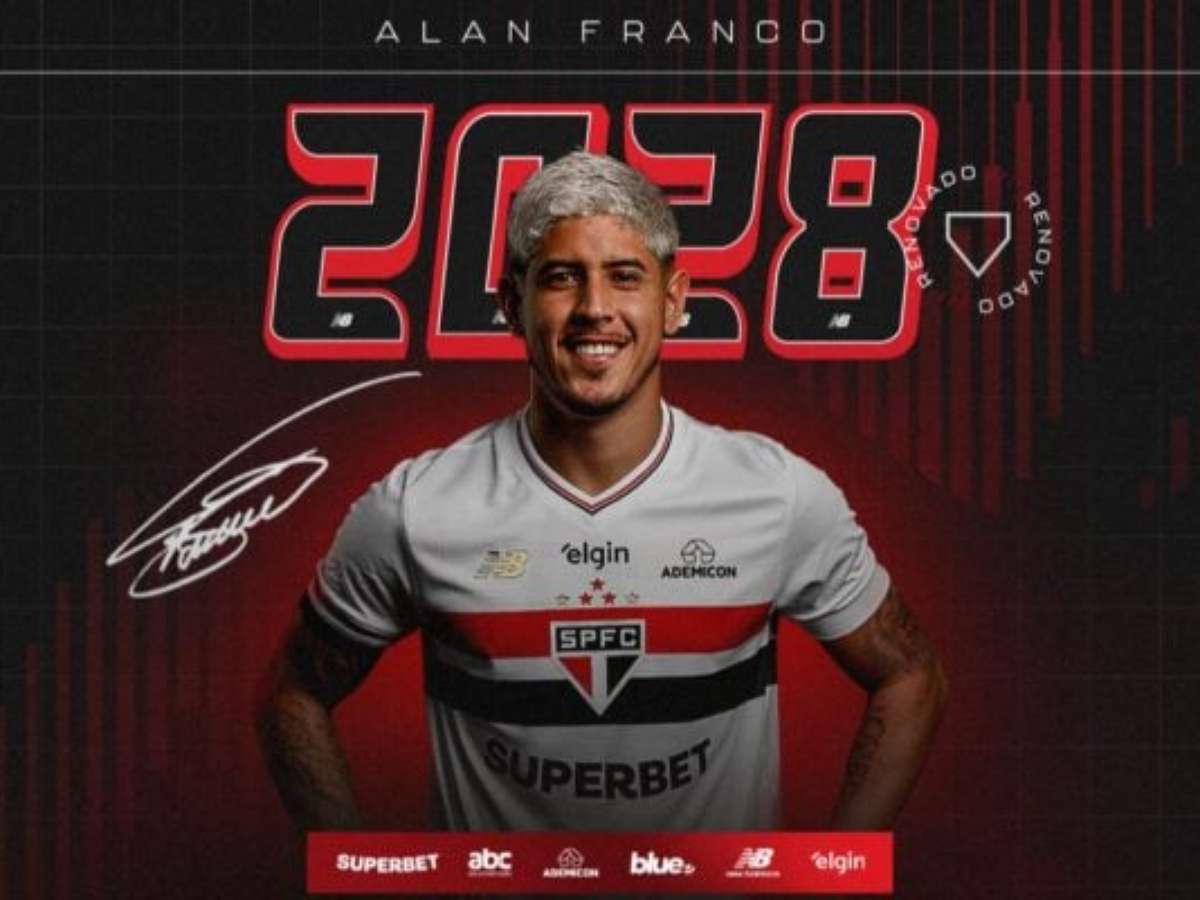 O São Paulo anunciou nesta segunda-feira (18/8), a renovação de contrato com o zagueiro Alan Franco. O defensor já havia assinado o novo vínculo na semana passada, mas o Tricolor ainda não tinha feito o anúncio oficial. O novo acordo agora entre o jogador e o clube paulista vai até o dia 31 de dezembro de 2028.