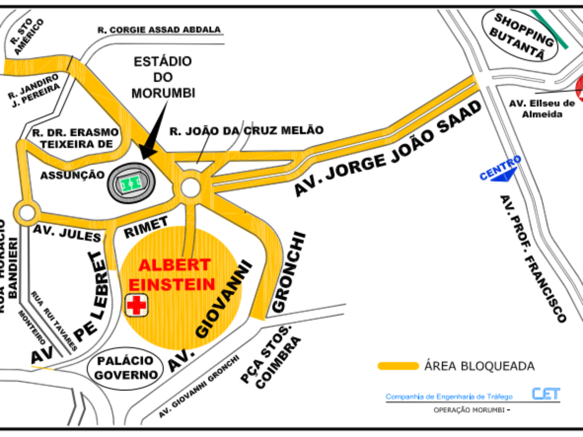 Sendo assim, só poderá circular por volta do Morumbi o torcedor que estiver com os ingressos físicos em mãos. Quem não apresentar os bilhetes não poderá circular dentro do perímetro. Confira a zona de bloqueio no mapa abaixo: