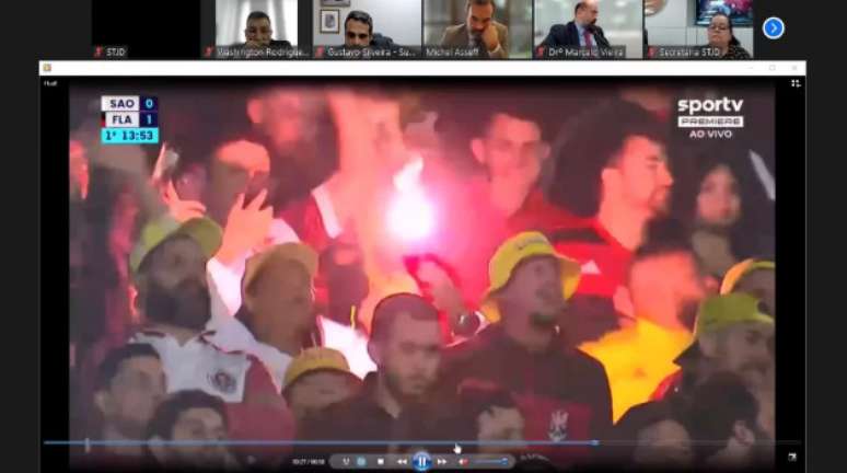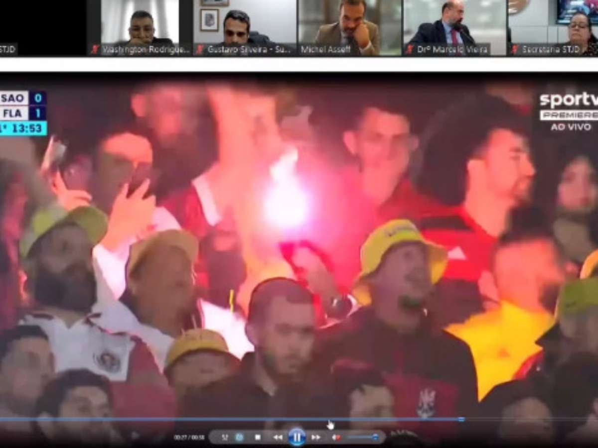 "A prova de vídeo corrobora com o que o árbitro narrou na súmula. Cabalmente proibido, vedado e não vejo maiores dificuldades na punição do artigo 213 pelo Flamengo. Por sua vez o São Paulo é tão responsável quanto, uma vez que é o mandante e permitiu que os artefatos entrassem no estádio. Não houve identificação do indivíduo e não há previsão da excludente do parágrafo terceiro e peço a condenação de ambos os clubes no artigo 213", justificou o Procurador.