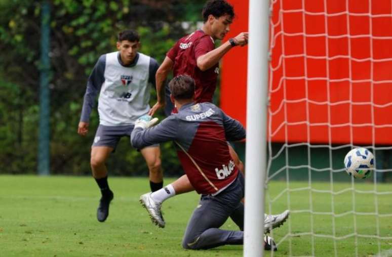 Tricolor venceu a equipe de juniores por 6 a 0. Último reforço anunciado pelo clube, argentino marcou três gols na atividade