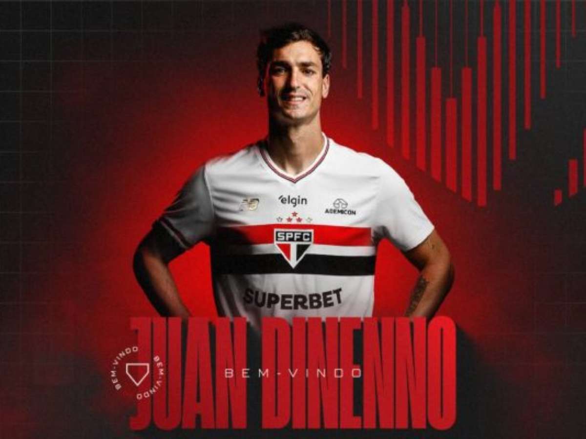 O São Paulo anunciou, nesta terça-feira (10), a contratação por empréstimo do centroavante Juan Dinenno, que estava no Cruzeiro. O jogador de 30 anos chega ao Tricolor com contrato até o fim de 2025, com possibilidade de permanência por mais tempo. Agora, ele deve começar a treinar com os companheiros para estar à disposição da comissão técnica.