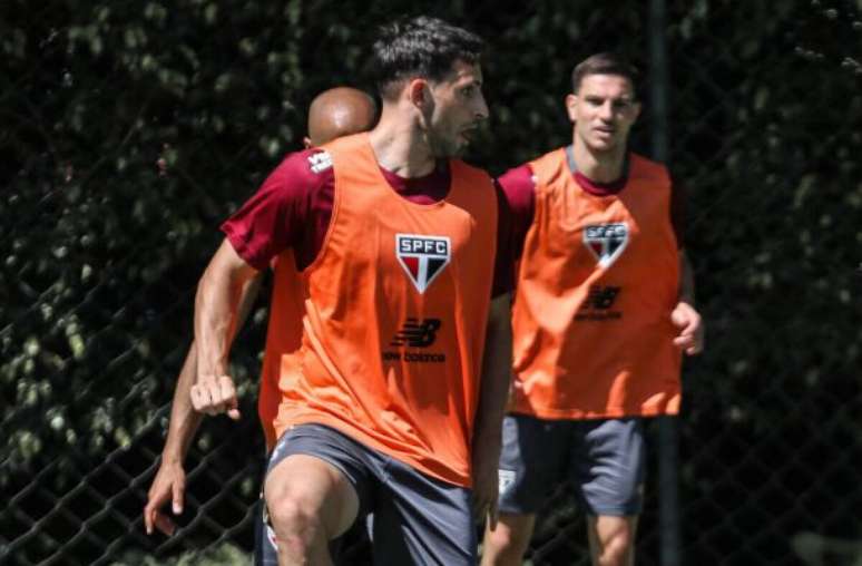 O São Paulo treinou nesta quinta-feira (6) e segue em preparação para o clássico diante do Palmeiras, pela semifinal do Campeonato Paulista. O técnico Luis Zubeldía dividiu o plantel em dois para as atividades do Tricolor.