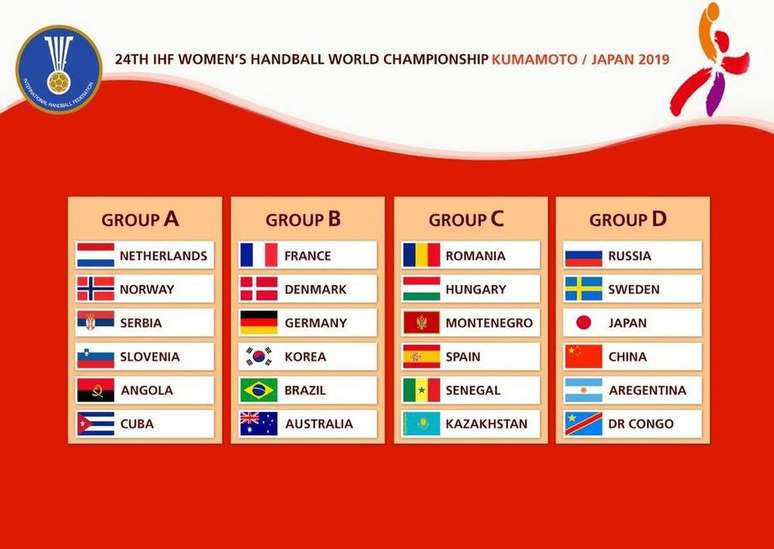 O sorteio foi realizado pela Federação Internacional de Handebol (IHF, na sigla em inglês) em Tóquio, no Japão, e definiu os quatro grupos, com seis seleções cada, da fase de classificação. Além das europeias, o Brasil jogará no Grupo B contra a Austrália e a Coreia do Sul. A tabela de jogos será divulgada posteriormente pela entidade.