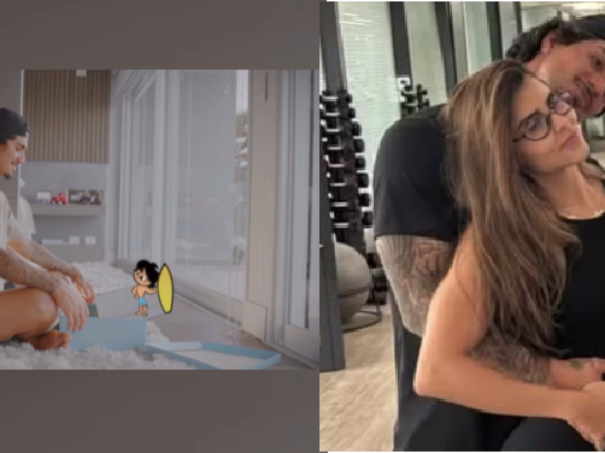 Gabriel Medina revelou que a suposta gravidez era, na verdade, uma ação de marketing para lançar sua nova marca infantil, a Medininha Oficial, inspirada em sua trajetória no surfe.