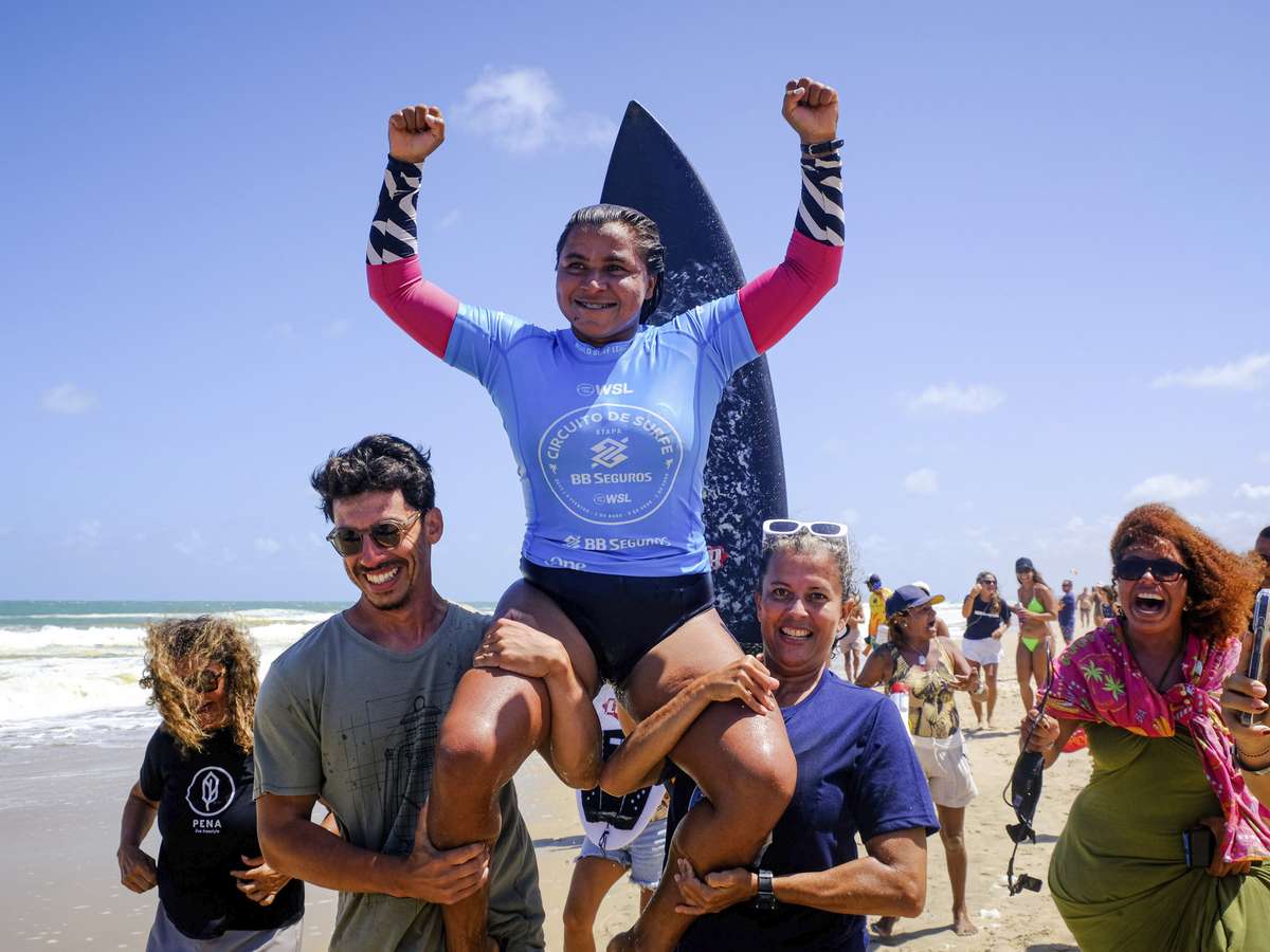 Juliana Santos, surfista cearense, venceu a etapa da WSL realizada na Praia do Futuro após ser convidada por uma inscrição social, destacando-se com uma performance memorável e conquistando seu primeiro título no Qualifying Series.