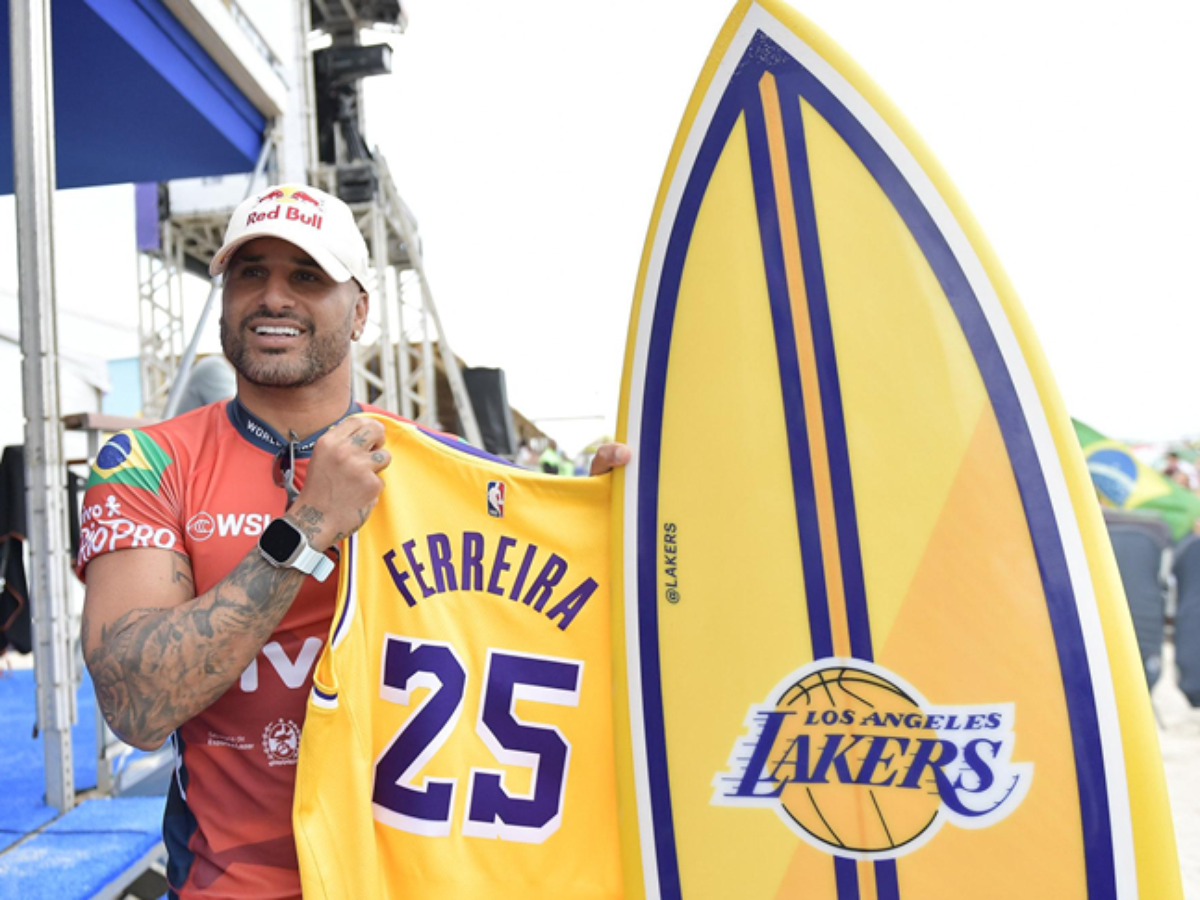 Em uma 'fusão dos esportes', nos últimos dias, Ítalo Ferreira, Yago Dora e Filipe Toledo foram contemplados com camisas de basquete personalizadas dos Los Angeles Lakers, equipe da NBA. "Muito irado. Eu me amarro em basquete", revelou Yago Dora, que já venceu a etapa em 2023. Ítalo, por sua vez, também foi agraciado com uma prancha com as cores da equipe norte-americana, além da vestimenta.