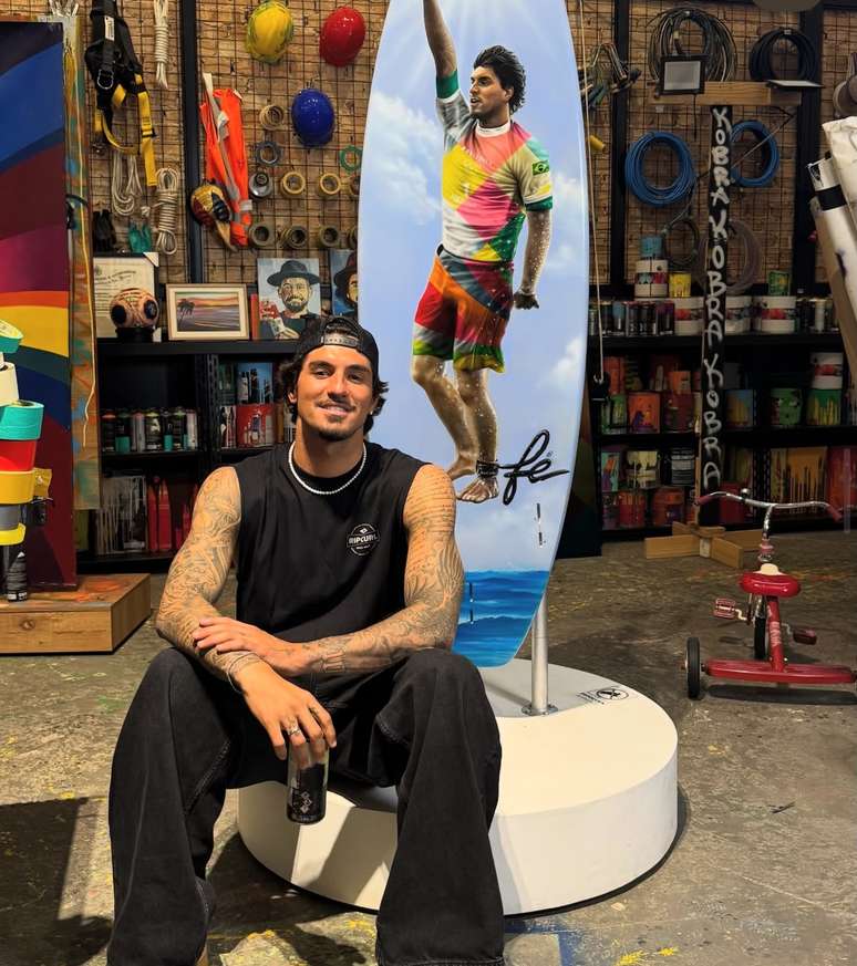 "O Gabriel apaixonado… é que eu gosto de me exibir para minha namorada. Então, eu vou dar trabalho", disse o surfista.