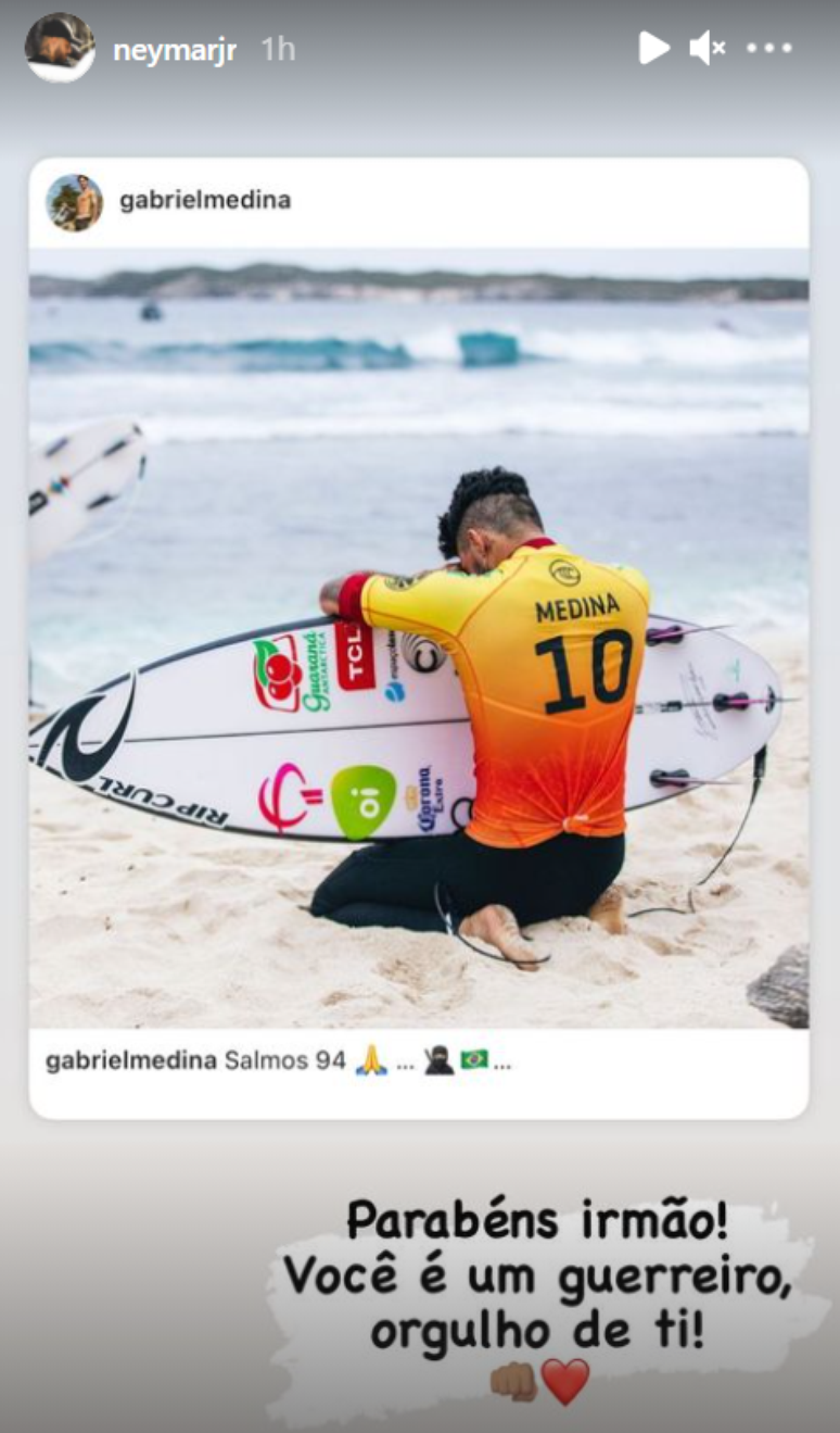 "Muito bom ver um corinthiano mais uma vez no topo do mundo. Medina, irmão, você merece muito, parabéns por esse tricampeonato, tenho certeza de que a Fiel inteira tem muito orgulho de você. Vai Medina!", escreveu o presidente do Timão.
