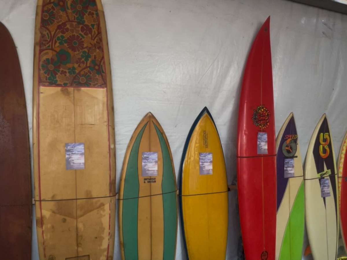 Proibições e memória: colecionador de pranchas expõe história do surfe em 'shapes' e 'quilhas' em SC