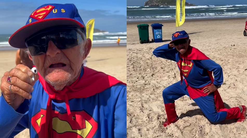 Super-Homem aos 78 anos de idade: conheça aposentado que anima etapa da WSL vestido de herói