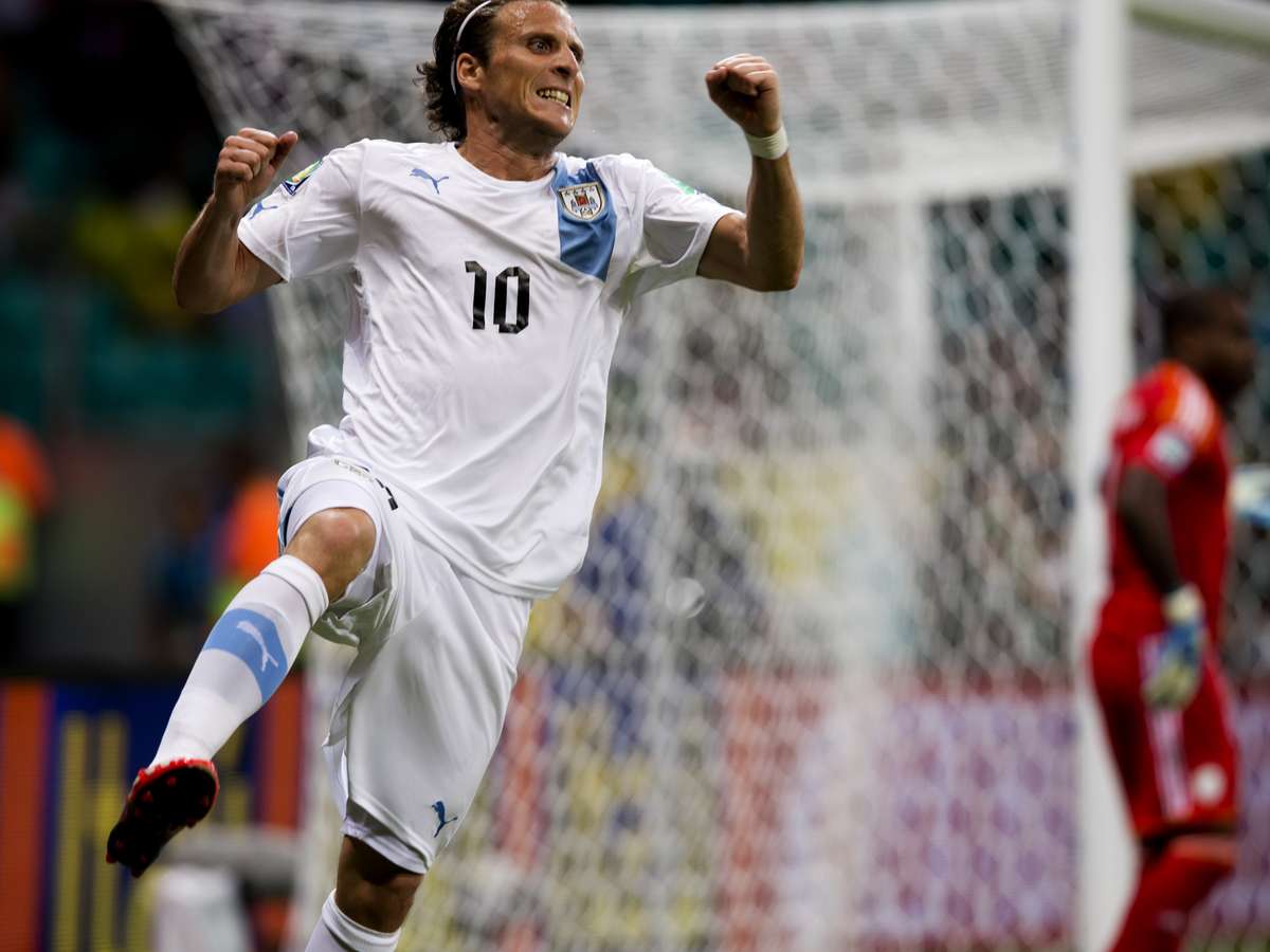 Melhor jogador da Copa de 2010, Forlán foi titular do Uruguai nesta quinta-feira e decidiu a partida. O atacante do Internacional fez um belo gol de canhota, que garantiu a vitória de sua equipe