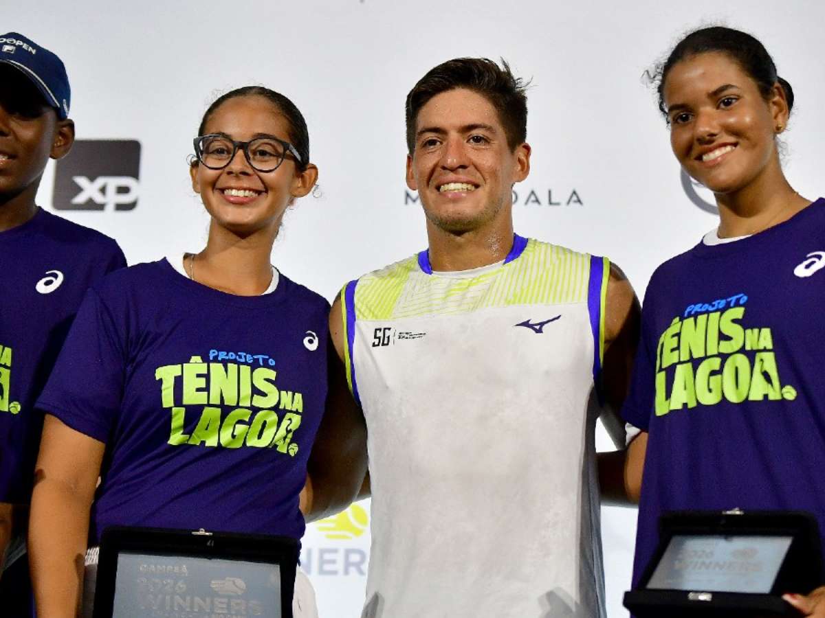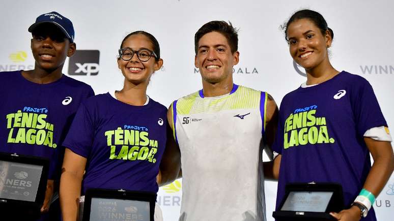 Os atletas do Tênis na Lagoa receberam a premiação das mãos do bicampeão do torneio, o argentino Sebastian Baez.