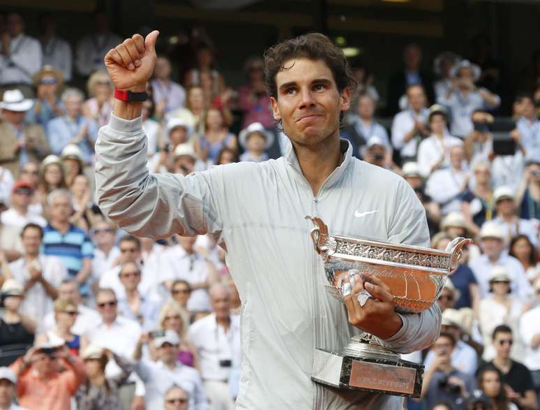 Assim que conquistou o título, o espanhol se pendurou nas arquibancadas para cumprimentar o ex-tenista sueco Bjorn Borg, segundo maior vencedor da história de Roland Garros, com seis títulos