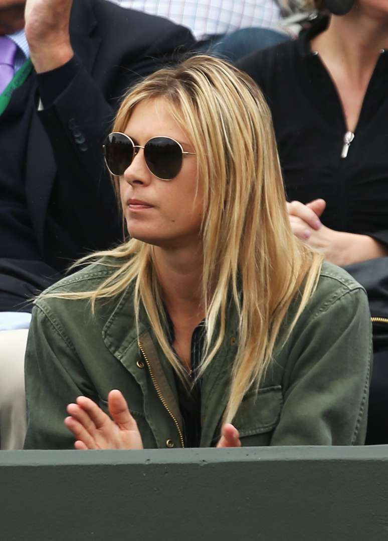 Na quinta-feira, um dia depois de ser surpreendentemente eliminada na segunda rodada do Torneio de Wimbledon, Maria Sharapova voltou às quadras, mas para torcer pelo búlgaro Grigor Dimitrov, com quem namora; veja