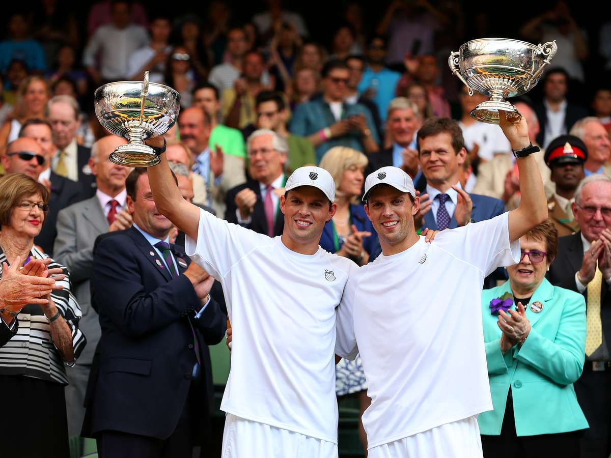 Os americanos Bob e Mike Bryan conquistaram neste sábado o título de duplas de Wimbledon. Os irmãos gêmeos venceram na final a dupla formada pelo brasileiro Marcelo Melo e pelo croata Ivan Dodig por 3 sets a 1