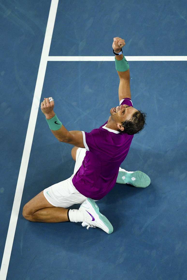 Rafael Nadal levou as mãos ao rosto, desacreditado, e abriu o sorriso mais largo possível neste domingo ao conquistar seu 21º título de Grand Slam, com uma virada espetacular sobre o russo Daniil Medvedev. Após perder os dois primeiros sets, a lenda espanhola ganhou a final do Aberto da Austrália, em Melbourne, por 3 sets a 2, com parciais de 2/6, 6/7 (5/7), 6/4/ 6/4 e 7/5, após mais de cinco horas de jogo.