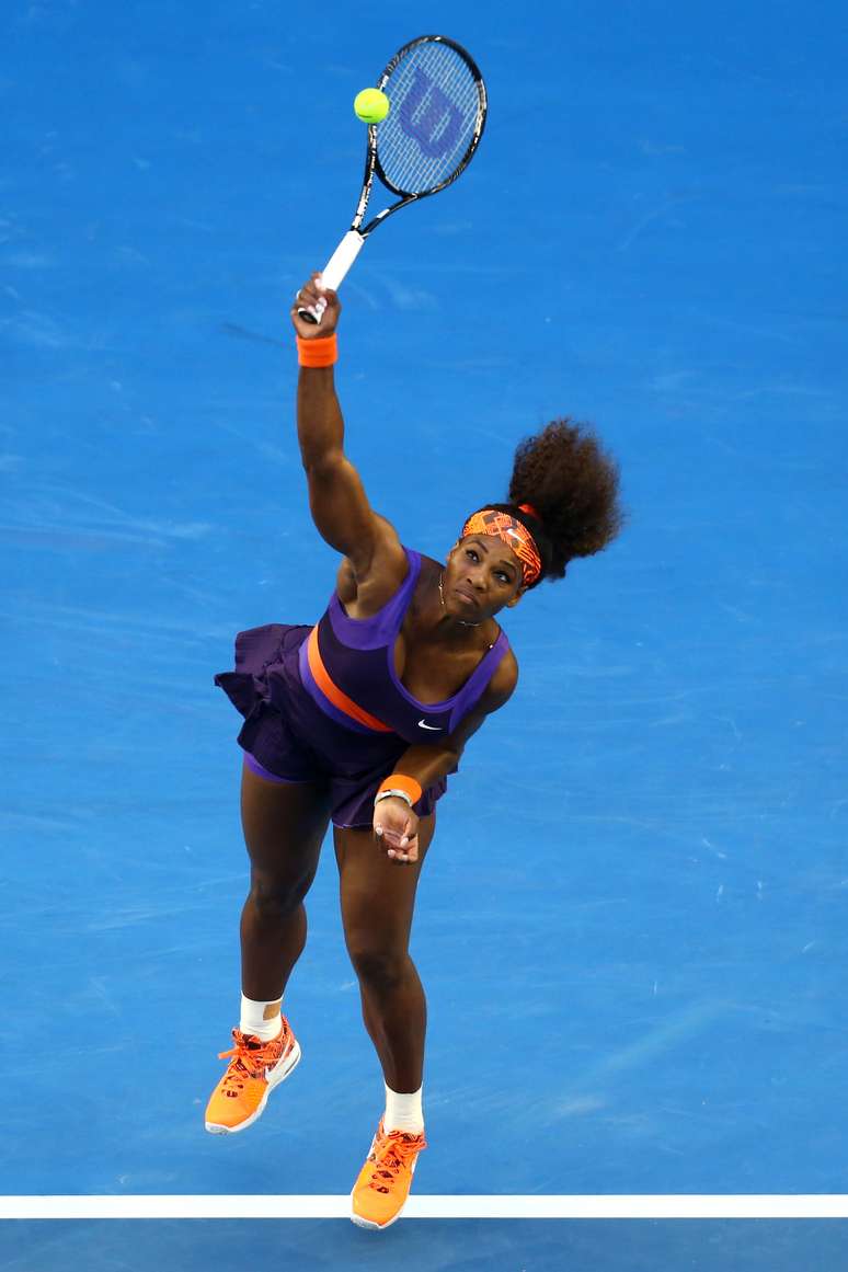 Firme no saque e dominante no fundo de quadra, Serena Williams não teve problemas para chegar às quartas de final do Aberto da Austrália. Na manhã desta segunda-feira, a americana, número 3 do mundo, dominou a russa Maria Kirilenko, a 15, e venceu em apenas 57 minutos de partida. A partida terminou em 2 sets a 0, com parciais de 6/2 e 6/0.