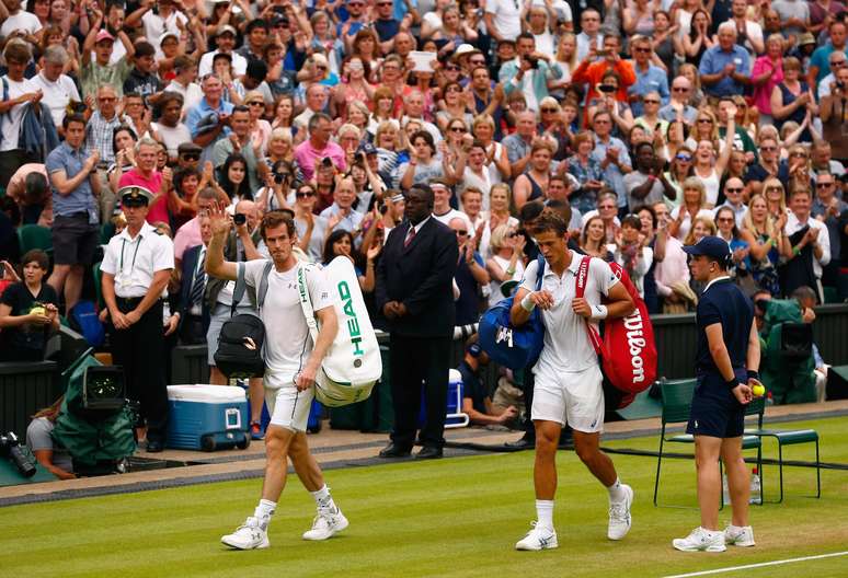 O britânico Andy Murray, terceiro tenista mais bem classificado no ranking mundial, segue aproveitando o fator casa para avançar em Wimbledon. Nesta quarta-feira, ele despachou a surpresa canadense Vasek Pospisil (54º), por 3 sets a 0, com parciais de 6/4, 7/5 e 6/4, após 2h11 de confronto válido pelas quartas de final, disputado na quadra central do All England Club, que contou com as ilustres presenças de David Beckham, príncipe William e Kate Middleton.
