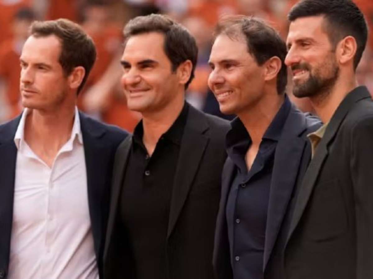 Nadal chorou copiosamente ao longo do tributo. E pouco depois recebeu o restante do Big 4 com Novak Djokovic, Andy Murray e Roger Federer presentes na quadra.