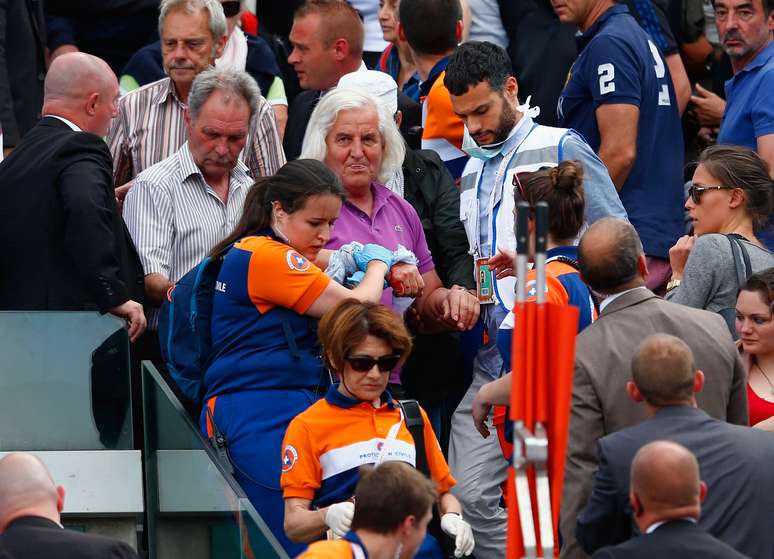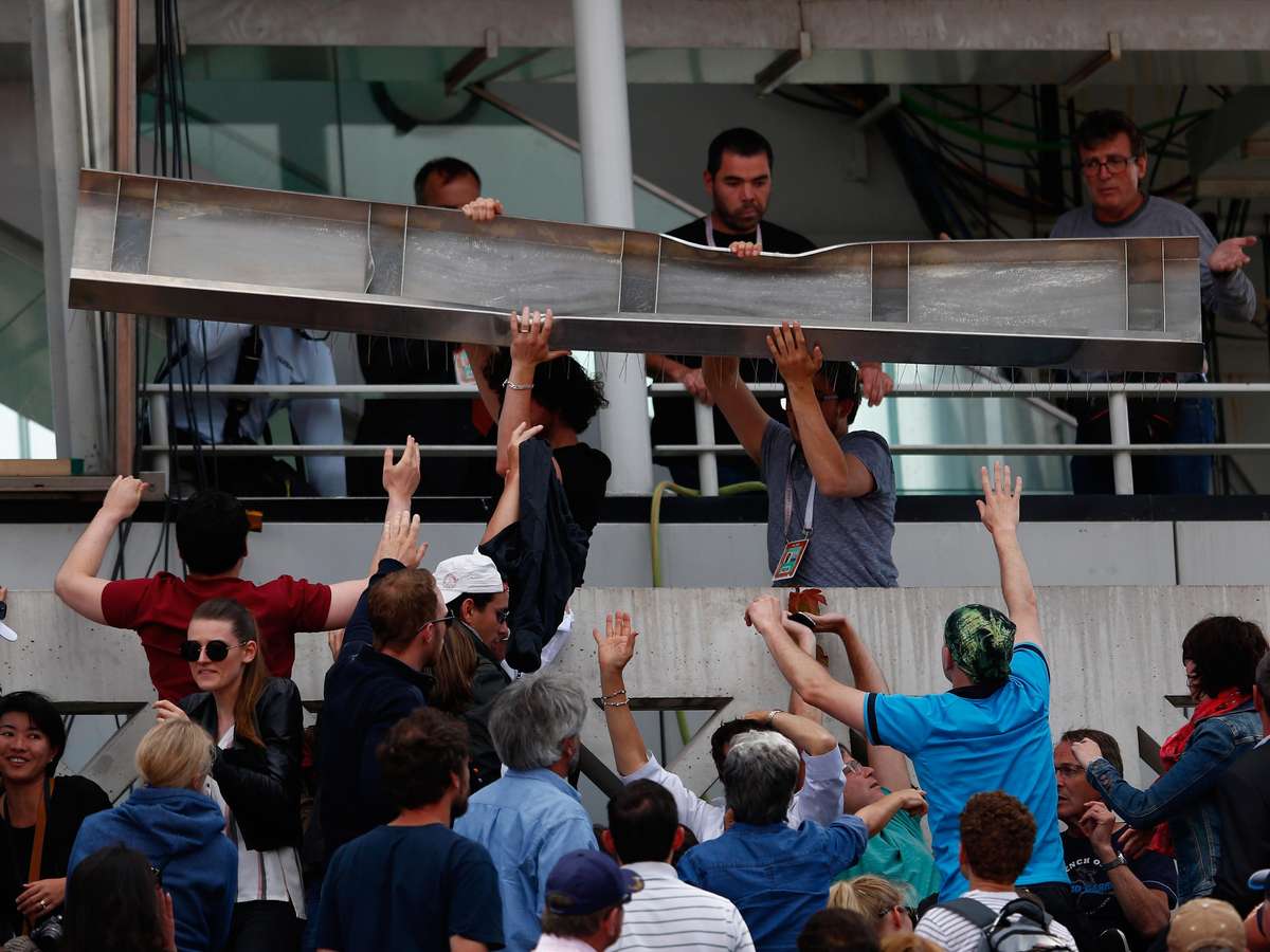 O incidente aconteceu na parte sul da quadra Philippe Chatrier. Uma lâmina metálica se desprendeu, possivelmente por causa do vento, e caiu na arquibancada, que estava lotada.