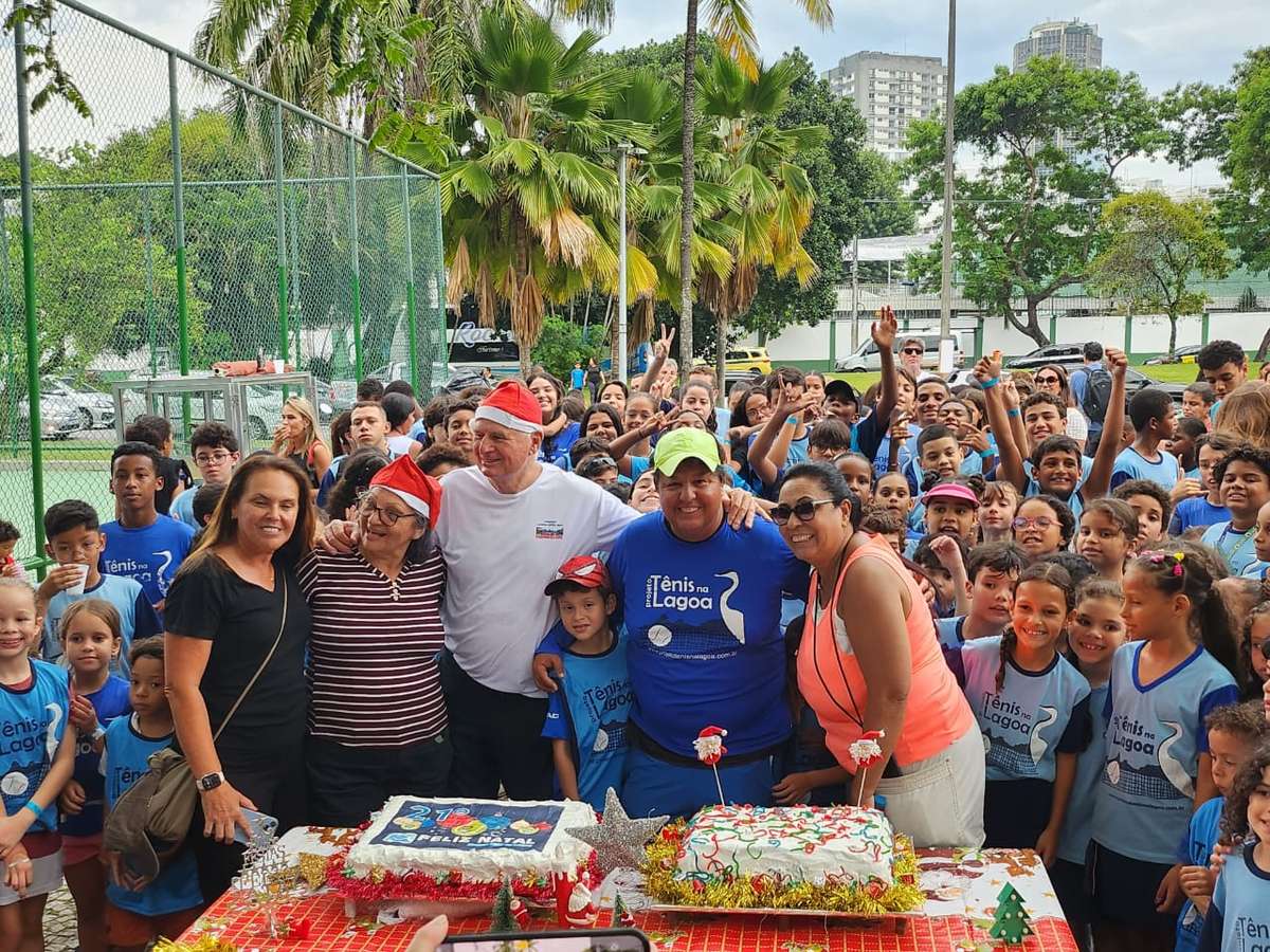 O projeto Tênis na Lagoa - Instituto Mirania Gomes Borges - vai realizar, no sábado, 13 de dezembro, a tradicional Festa de Natal do projeto social mais longevo do Rio de Janeiro nas quadras públicas da Lagoa Rodrigo de Freitas, em frente ao Monte Líbano.