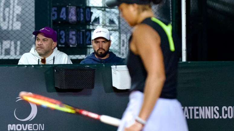 Léo: O tênis pra mim e pra gente é um esporte de movimento. Ela melhorou muito a movimentação, mas quanto melhor ela se mover, melhor ela vai jogar, ainda mais no estilo de jogo que ela gosta. Ela gosta de bater todas as bolas. Quanto melhor ela chegar, mais opções de bater a bola que ela quer, ela vai ter. Então, aí tem a parte mental de…