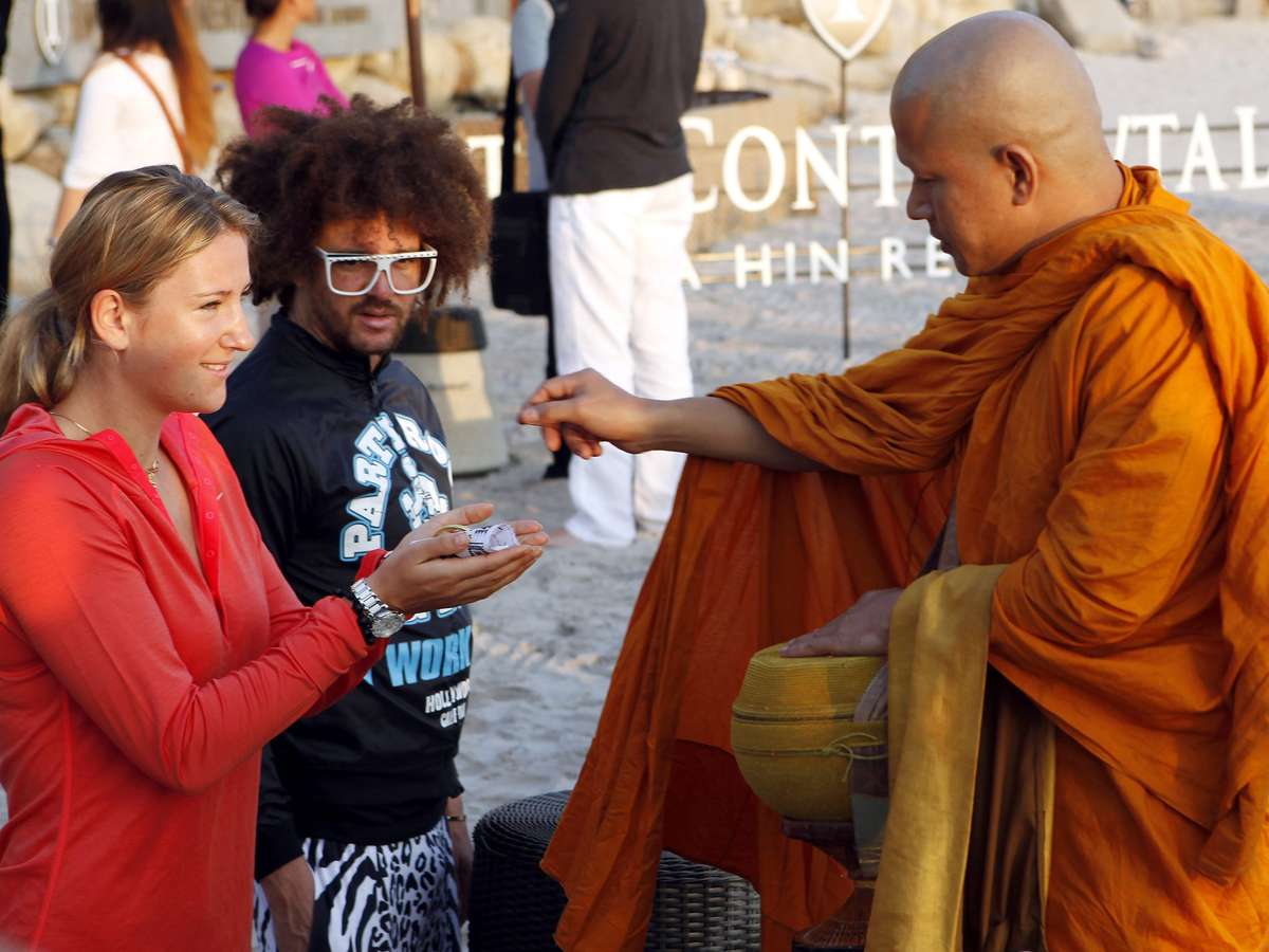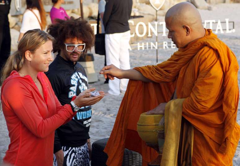 Atual tenista nº 1 do mundo, Victoria Azarenka aproveitou a estadia na Tailândia para visitar monges budistas na manhã desta sexta-feira, em um resort na cidade de Hua Hin. Azarenka teve a companhia de seu namorado, o rapper americano Redfoo, da dupla LMFAO