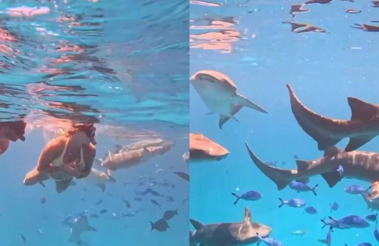 “Apenas mais um dia na vida”, escreveu a atleta de 27 anos, que está viajando com o namorado, o brasileiro Georgios Frangulis. No registro, ela também aparece com peixes menores e tartarugas.