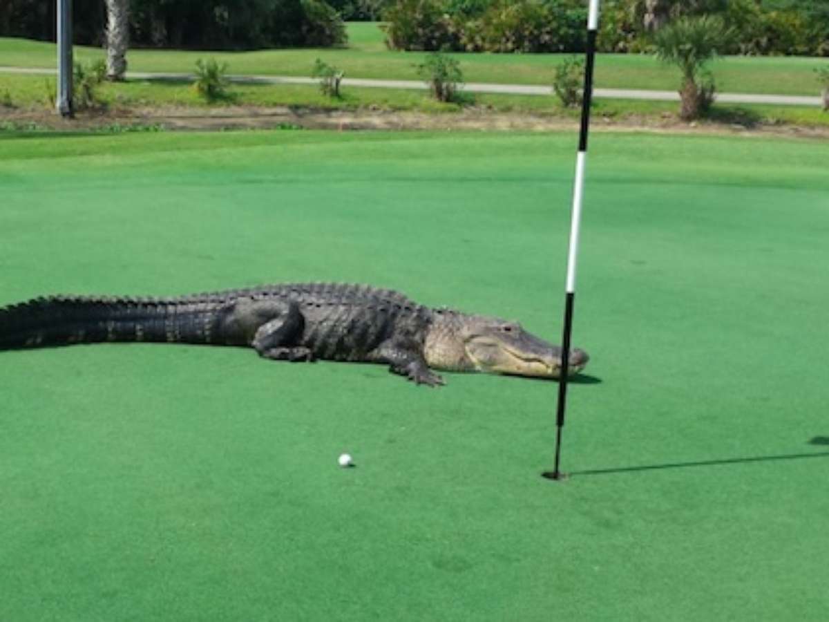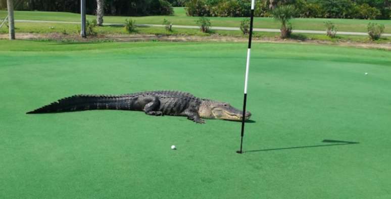Imagine a seguinte situação: você combina de jogar golfe com um amigo e, ao chegar ao buraco nº 7 do campo, depara-se com um enorme (e bota enorme nisto!) aligátor a pouco metros do alvo. Momento ideal para acordar do sonho e partir para outra história, não?