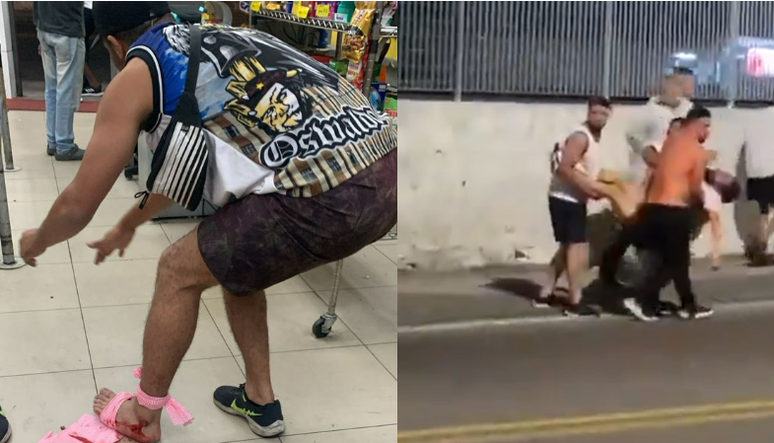 Em um dos vídeos, um torcedor baleado entra em um mercado da região em busca de abrigo. Ele está com o pé esquerdo ensanguentado.