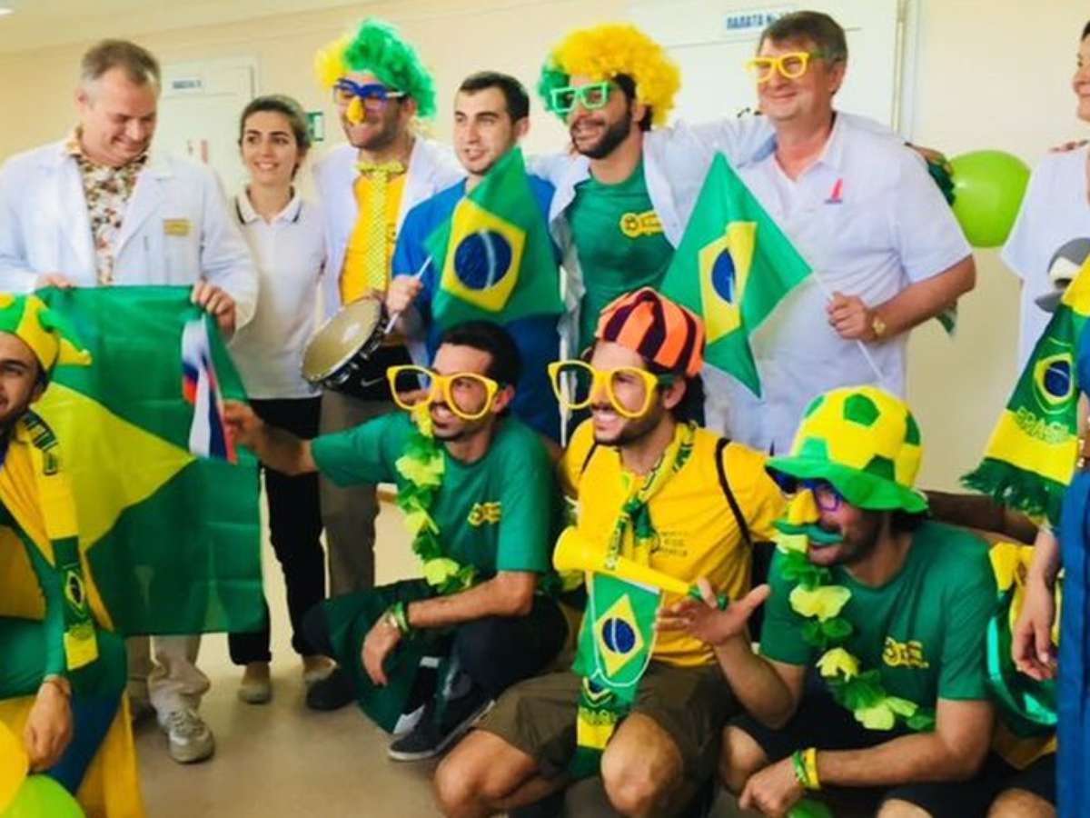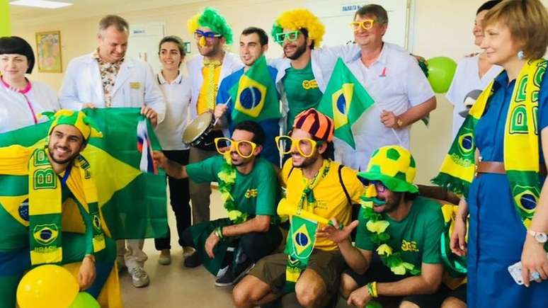 Um grupo de torcedores brasileiros surpreendeu crianças com câncer de um hospital público em Samara, na Rússia, na véspera do jogo da seleção nas oitavas de final da Copa do Mundo.