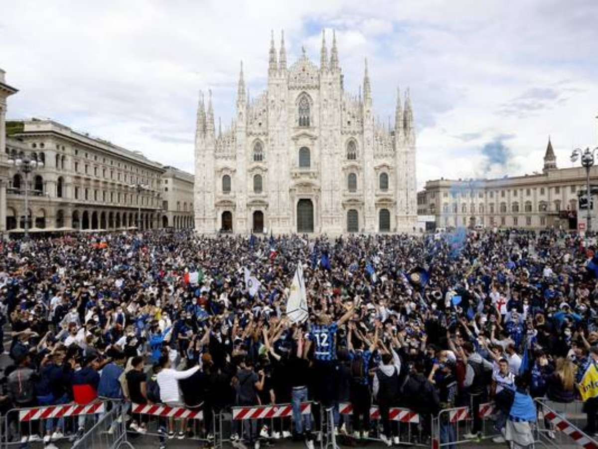 Uma multidão de torcedores da Inter de Milão se reuniu neste domingo (2), na Piazza del Duomo, na cidade ao norte da Itália, para comemorar a conquista do título do Campeonato Italiano depois de 11 anos de jejum.
