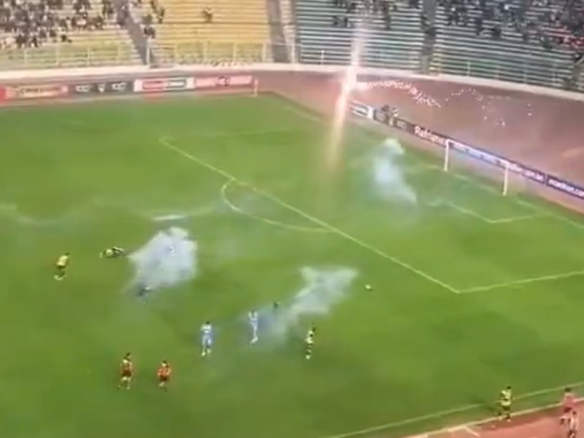 🎇 Ganando el partido por 3-2 ante Blooming, la parcialidad local empezó a arrojar fuegos artificiales y bengalas al campo de juego.