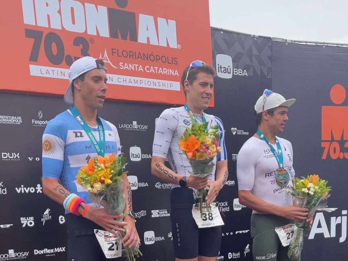 Federico Scarabino e Djenyfer Arnold conquistaram vitórias históricas com recordes no Ironman 70.3 em Florianópolis, disputado por 1.800 atletas, garantindo prêmios em dinheiro e vagas para o Mundial de 2026.