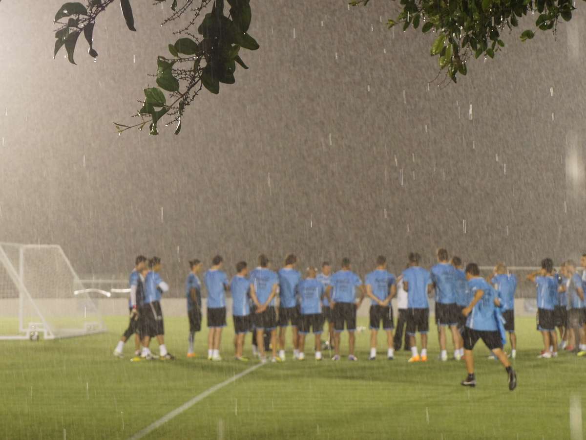 Com atenções divididas e sob chuva, Uruguai treina no CT do Náutico