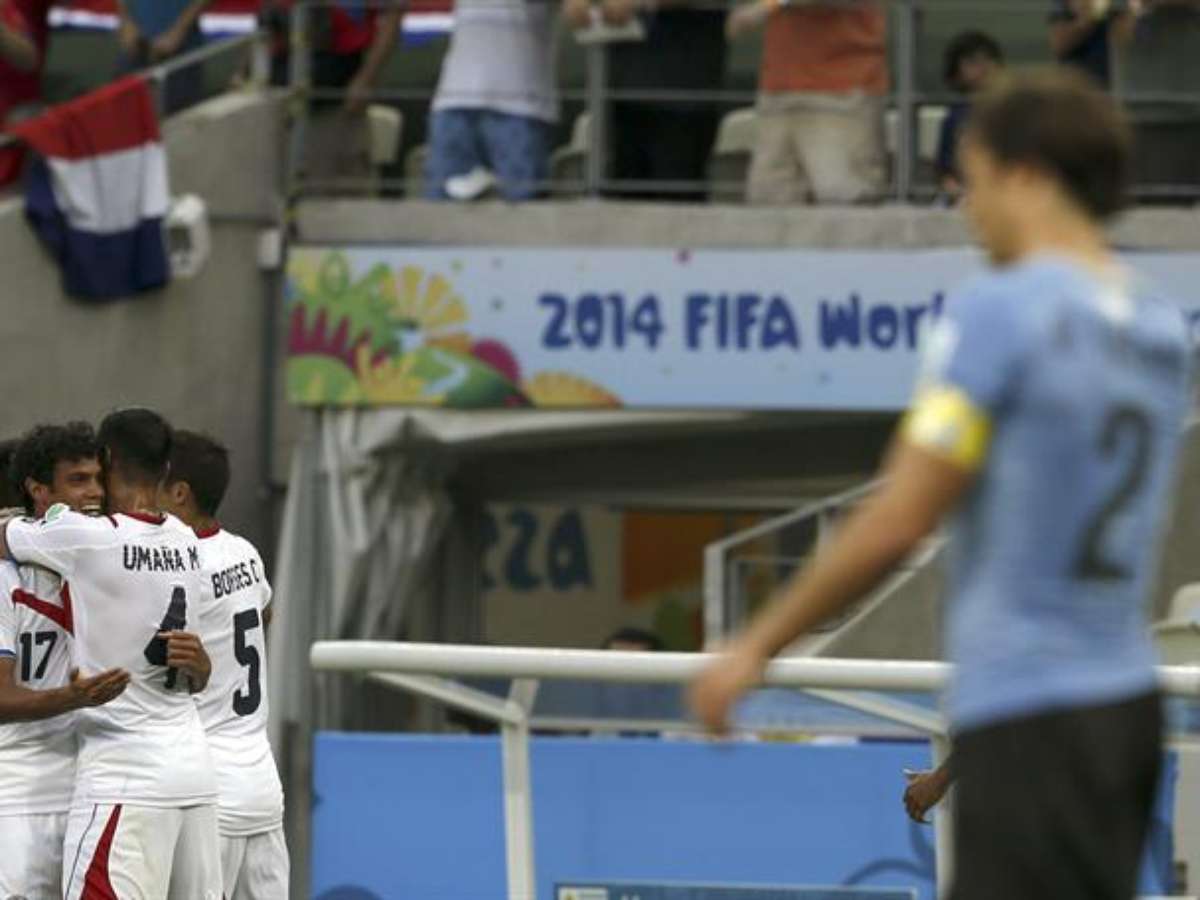 Equipe costarriquenha comemora gol contra Uruguai na primeira partida do "grupo da morte" da Copa do Mundo, que garantiu a vitória para a única seleção do Grupo D que não tem nenhum Mundial.