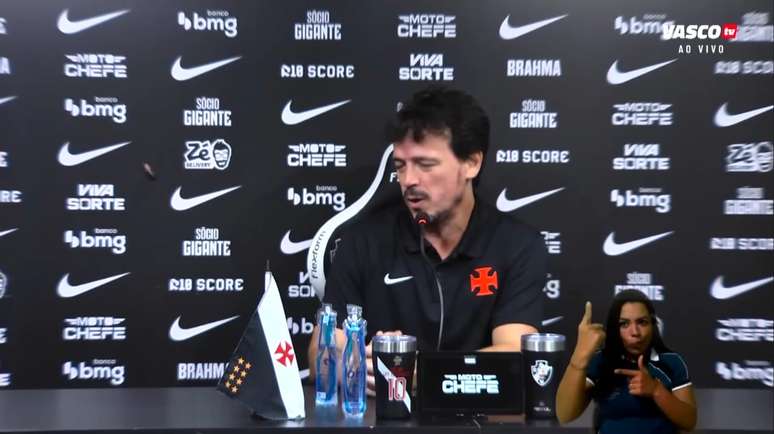 A coletiva de imprensa do Vasco após a vitória por 4 a 2 sobre o Maricá, em São Januário, ganhou um elemento completamente inesperado e acabou viralizando nas redes sociais. Enquanto o técnico Fernando Diniz comentava a atuação da equipe e respondia às perguntas dos jornalistas, uma barata de grandes proporções surgiu no painel de patrocinadores, logo atrás do treinador, e passou a circular pelo cenário da entrevista.