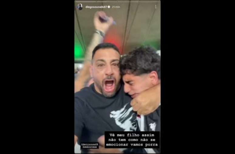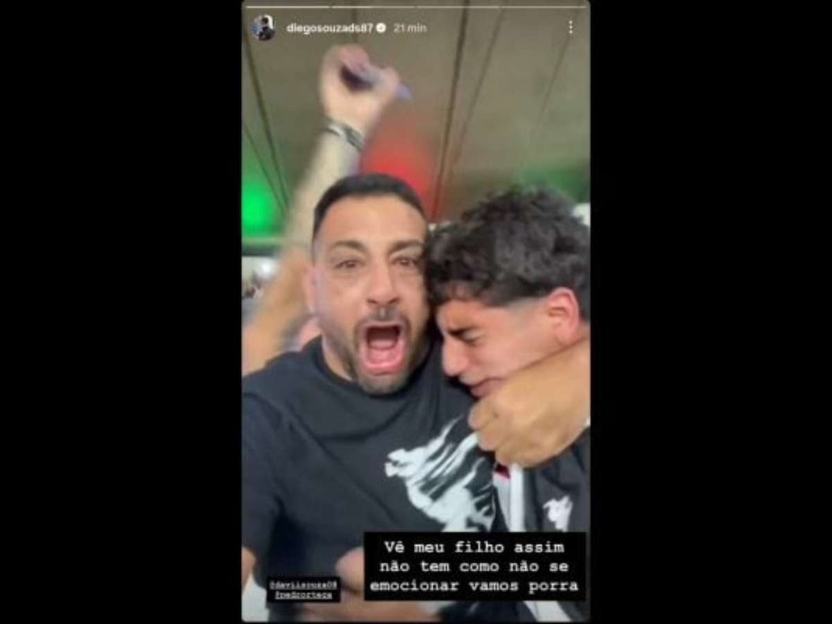 "Ver meu filho assim não tem como não se emocionar", escreveu Diego Souza na legenda do vídeo com a reação do cruz-maltino.