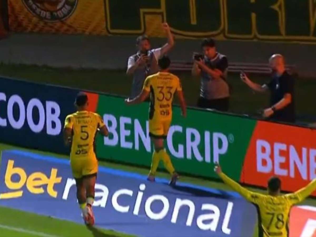 Aos 31 minutos, Renato Marques ganhou disputa pelo alto e a bola desviou no zagueiro Carlos Cuesta antes de morrer no fundo das redes de Léo Jardim.