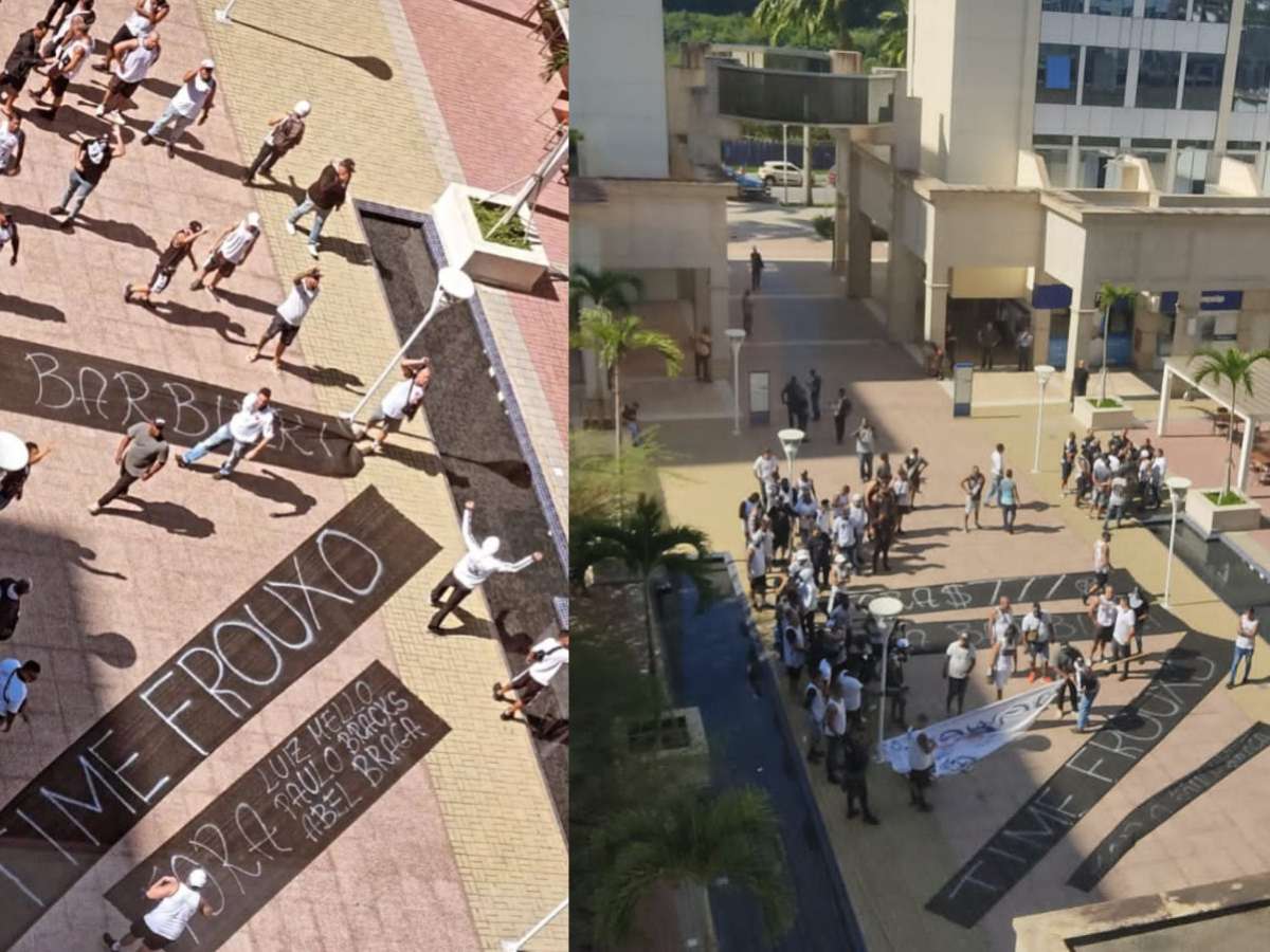 Torcedores do Vasco fazem protesto em frente à sede da 777 no Rio