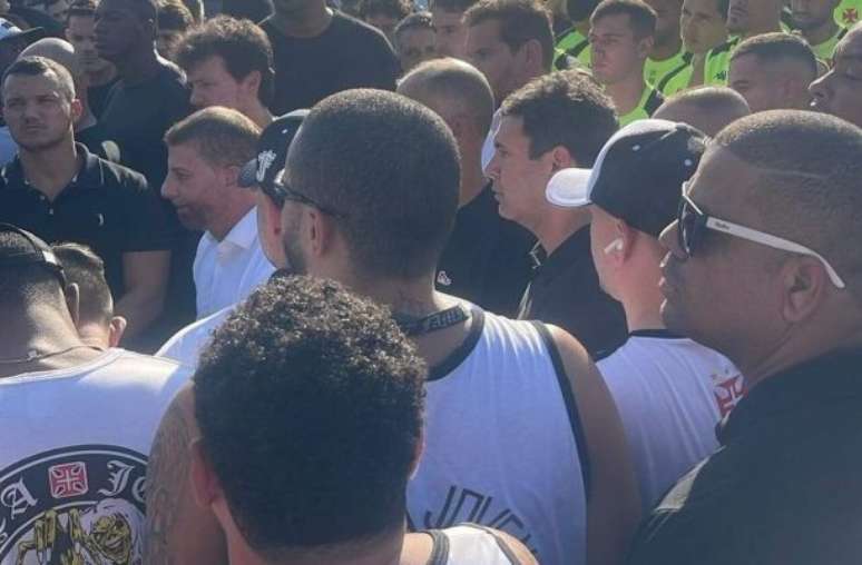Imagens da conta "Plantão Vascaíno", no X, mostram, inclusive, o técnico Fernando Diniz conversando com os integrantes da organizada. Por se tratar de uma gravação amadora, a qualidade do vídeo não é alta, mas é possível identificar algumas falas do técnico Fernando Diniz.