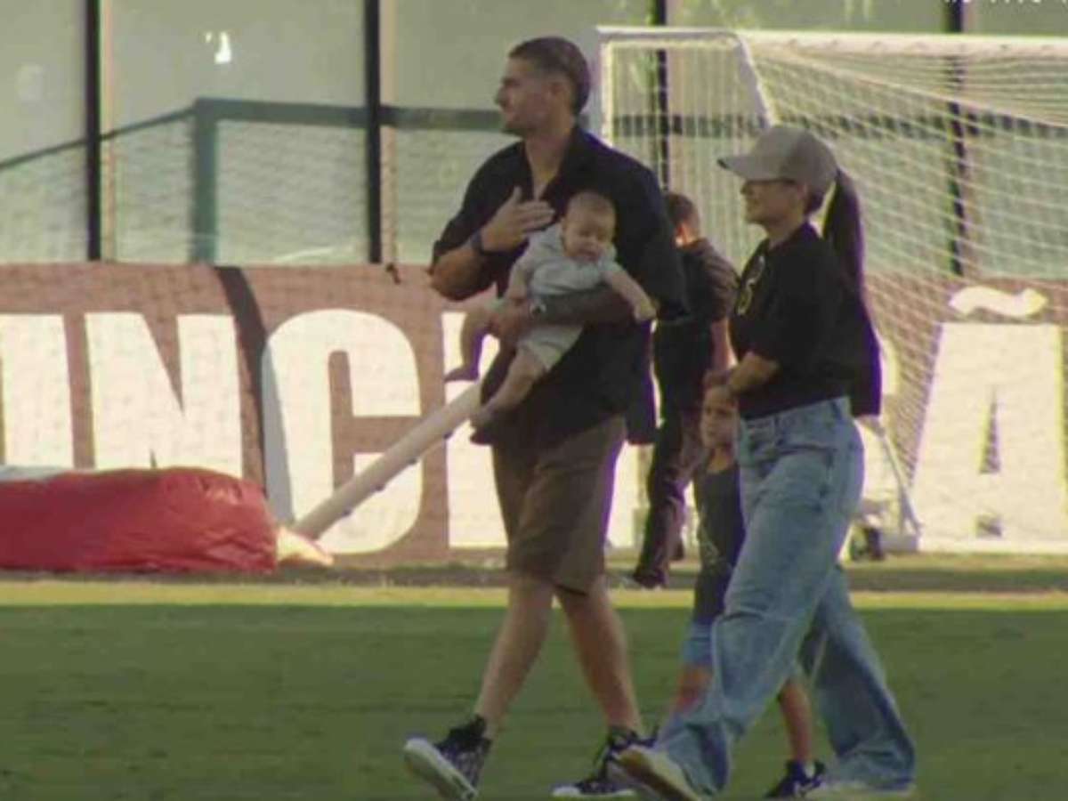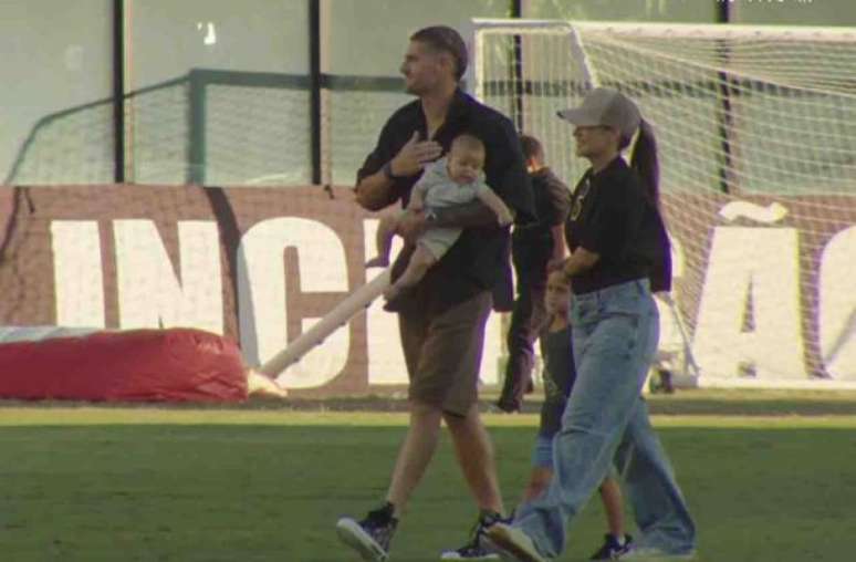 Depois, ele deu uma volta olímpica pelo gramado ao lado da esposa, Joselina Bonetti, e dos filhos Vittorio (quatro anos) e Bastian (dois meses). Vegetti acenava para os torcedores, que, emocionados, cantavam seu nome. À reportagem do SporTV, ele falou rapidamente sobre a sensação de tal despedida.
