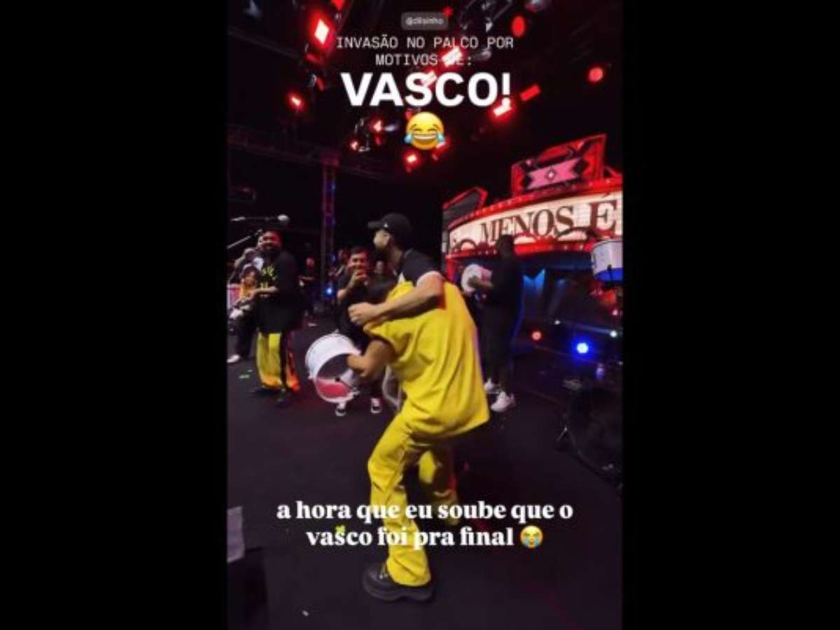 Dilsinho teve um dos melhores motivos desta década para invadir o palco de apresentação do grupo Menos é Mais, ainda no início do show, no último domingo (14). Vascaíno declarado, o cantor não segurou a emoção com a classificação do Vasco à final da Copa do Brasil e foi correndo celebrar com Gustavo Goes, músico da banca e também torcedor do clube.