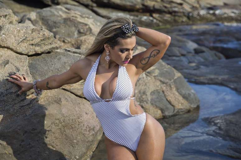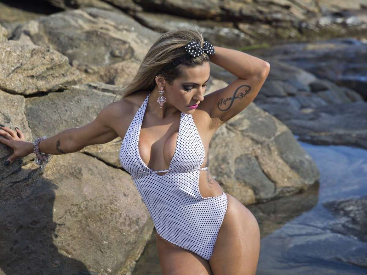 A campeã brasileira de fisiculturismo, Verônica Araújo, exibiu seu corpo em um ensaio realizado em uma praia no Rio de Janeiro. Ela mantém a forma praticando musculação, treinando muay thai e cuidando da alimentação.