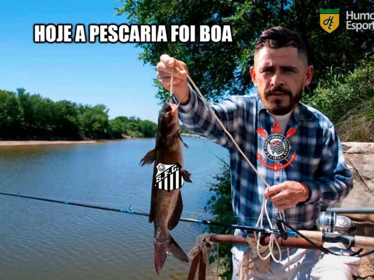 Pescaria boa! Torcedores do Timão tiraram onda com o rival após a vitória por 4 a 0 na partida de ida das oitavas de final da competição. Confira as montagens! (Por Humor Esportivo)